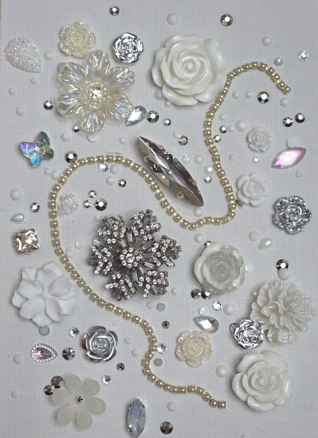 Packets can contain. Acrylic, Resin, Glass, Metal or Clay 3D elements and stones.