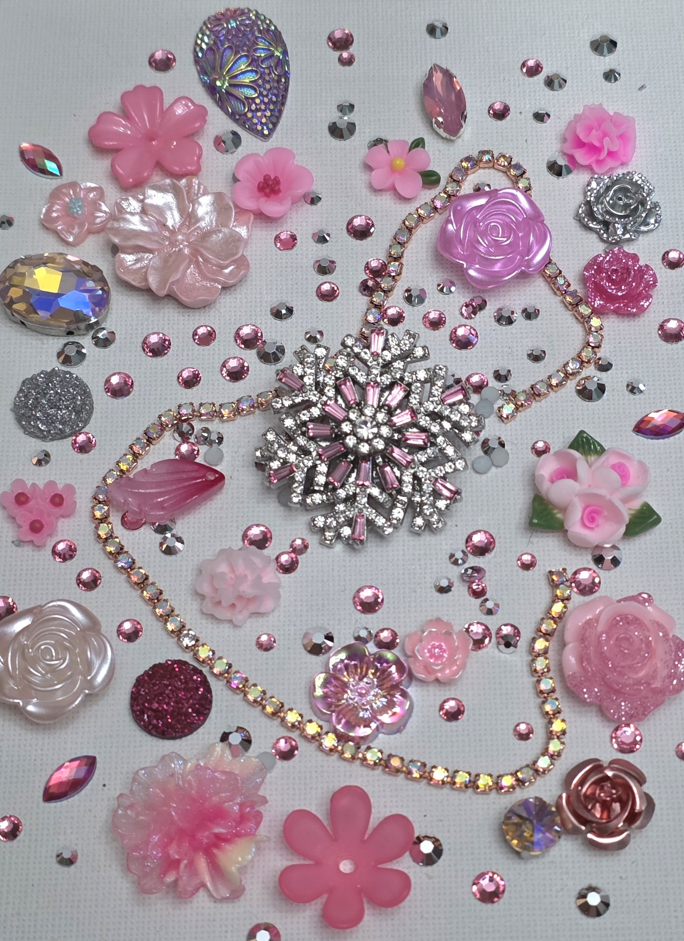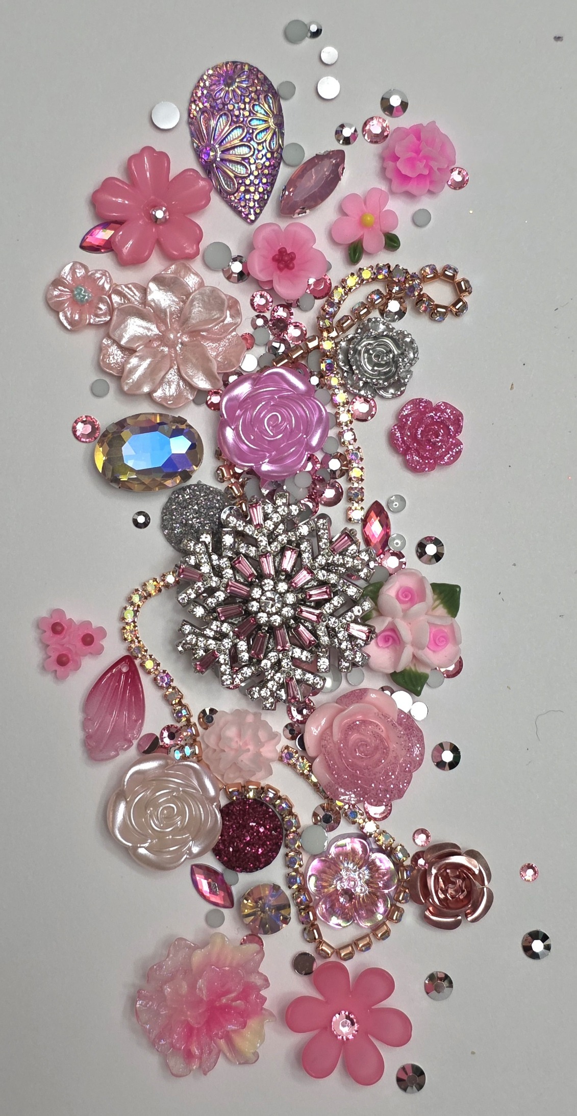Packets can contain. Acrylic, Resin, Glass, Metal or Clay 3D elements and stones.