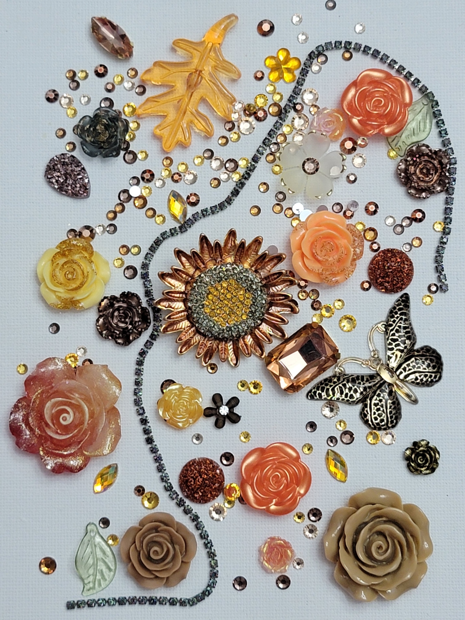 Packets can contain. Acrylic, Resin, Glass, Metal or Clay 3D elements and stones.