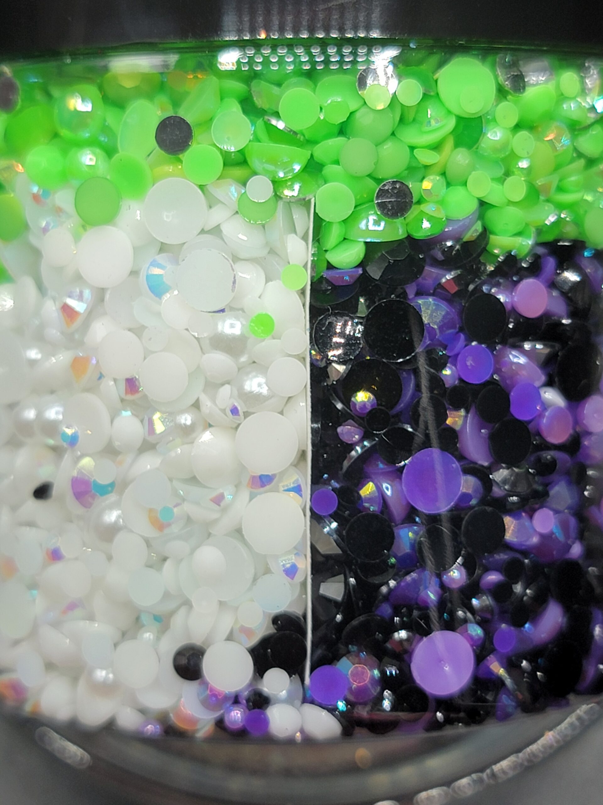 12,000+ Resin and Pearl stones. More than Enough stones to complete a 20 (maybe 2) or 30 oz tumbler with leftovers so only 1 Jar needed. Sizes 2mm – 6mm. Our custom resin bling mixes contain 20% or less of pearls. Each color Stone or Pearl in the mix is individually weighed by size and mixed and then weighed again for each individual portion so you get a more consistant product from jar to jar. Packaged in a 6 ounce(volume) jar.