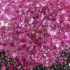 Light pink with lots of silvery flash, has squiggle glitters in a darker pink shade.