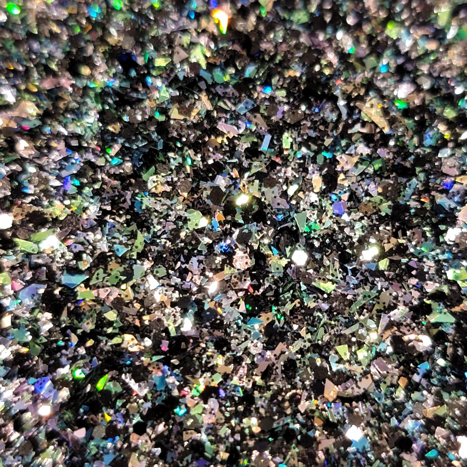 Bright Lights, Big City! Black based mini mix with tons of super holographic shards in multiple colors.