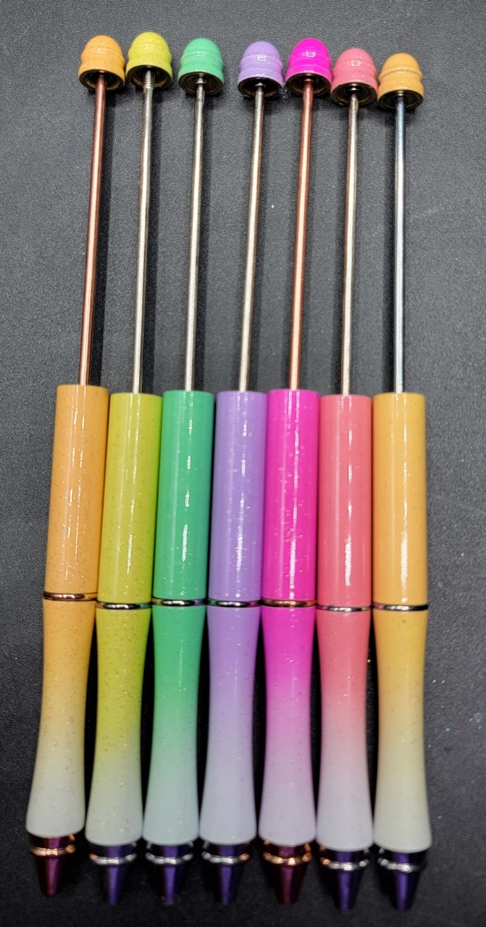METAL barrel beadable pens with a glitter ombre’ coloration. Combine with silicon and acrylic beads and focals.