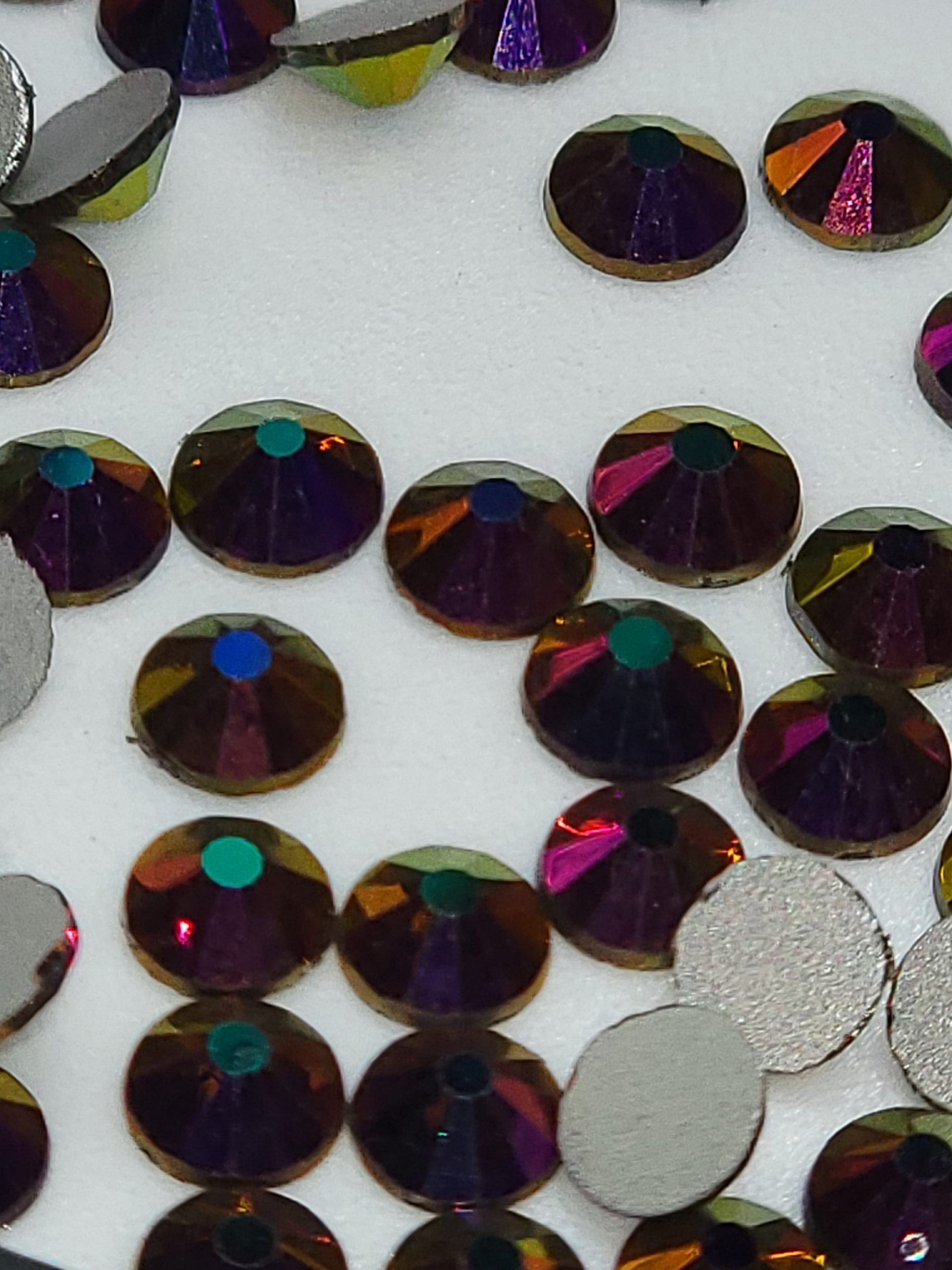 Glass, 1440 stones/pkg. Gorgeous solid metallic flashes copper, teal, magenta, blue and purple.