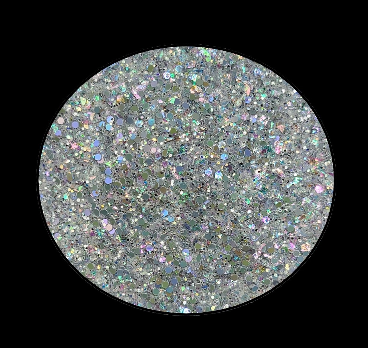 Custom Mini mix, silvery grey iridescent blend with a subtle pastel rainbow