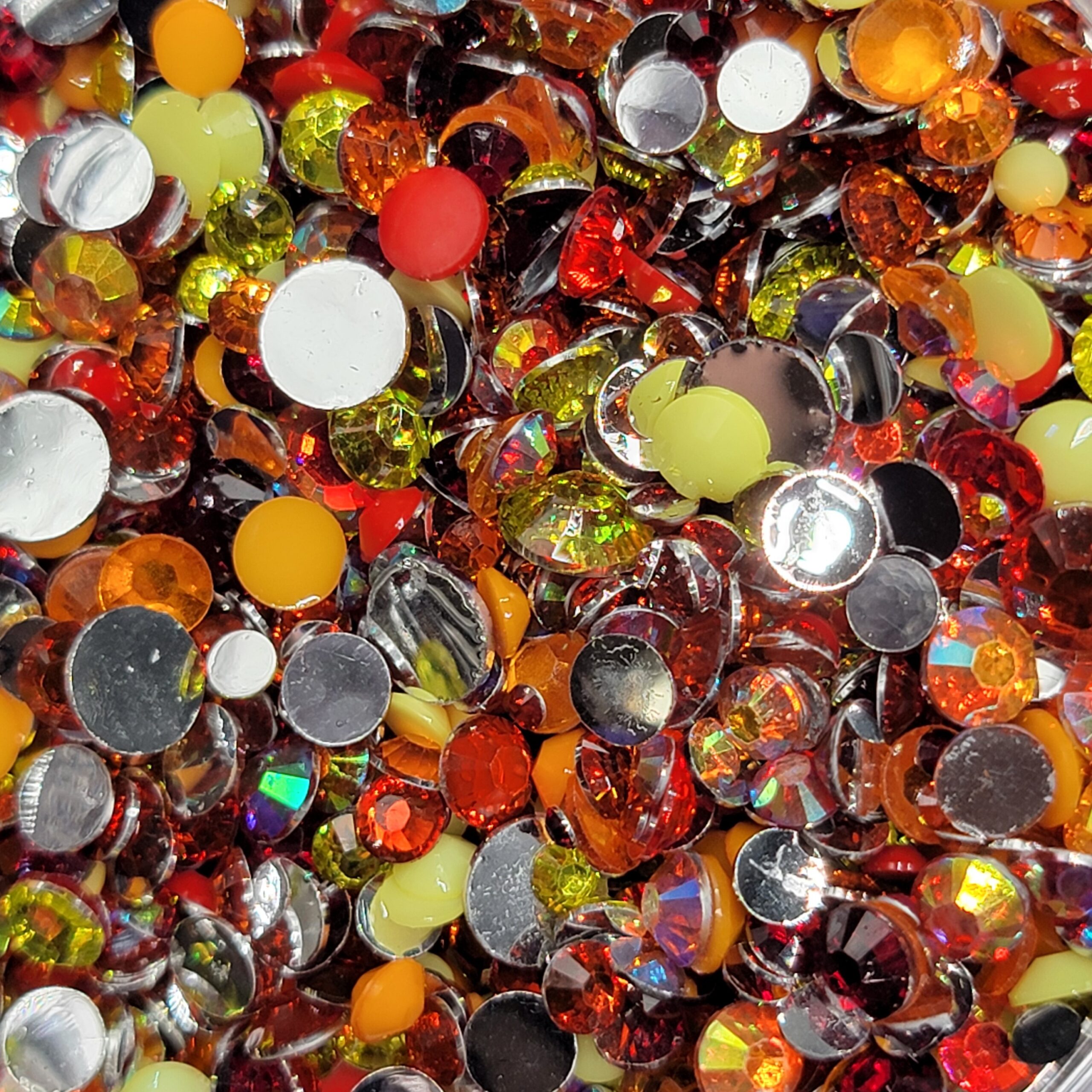 Burning shades of red, orange and yelllow in this all Stone no Pearl mix. Includes new clear red and orange luminious stones.
